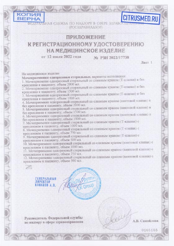 Материалы изготовления изделия: Мешок для мочи, трубка – поливинилхлорид; Сливной клапан – полипропилен
